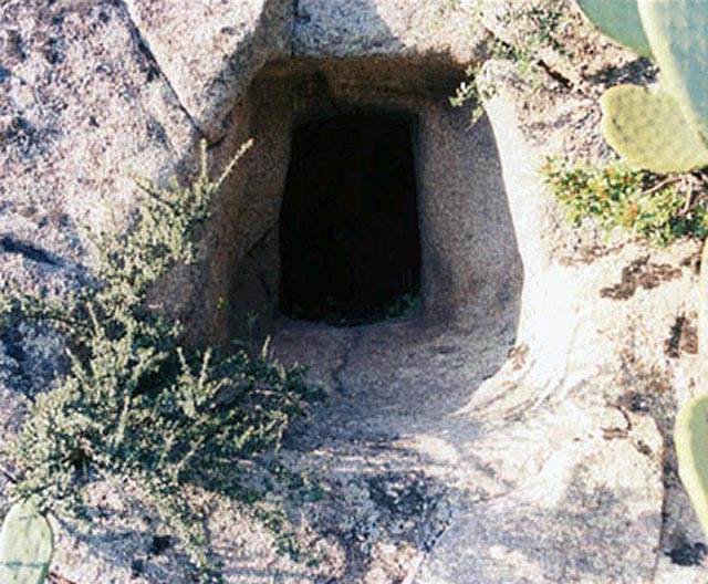 La “domus” si apre in uno sperone granitico erratico di media altezza. Una sorta di invito di forma sub-trapezoidale precede il portello di ingresso, orientato a SO, di luce sub-rettangolare. Immette in un'anticella di pianta sub-rettangolare, parzialmente interrata. Le pareti sono ortogonali al pavimento; il soffitto, a doppio spiovente, presenta un falso trave di sezione rettangolare scolpito in sensibile rilievo impostato nella mezzeria fra i due piani obliqui ad imitazione del tetto di una capanna. Anche i lati superiori dei due spioventi sono sottolineati da un rilievo piuttosto marcato. Nella parete d'ingresso, all'altezza del lato superiore del portello, si notano due solcature orizzontali parallele. Nella parete di fronte all'ingresso e coassiale ad esso, si apre, sensibilmente rilevato, un portello di luce rettangolare, strombato in larghezza verso l'interno. Lo spessore della soglia è sottolineato da due solcature longitudinali piuttosto marcate. Immette in un vano di pianta su-ellissoidale con pareti concave e soffitto piano. A SE dell'ingresso si apre una nicchia rettangolare di poco rilevata. Nella parete SE dell'anticella si apre un II portello che immette in un vano di pianta sub-rettangolare a sviluppo longitudinale con pareti ortogonali al pavimento e al soffitto piano. La parete SE presenta un'ampia nicchia di sezione tronco-ogivale.