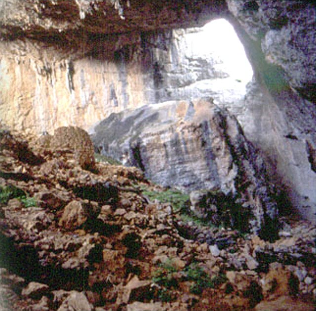 Un grande sbalzo calcareo, che un tempo era la volta di un'enorme grotta in parte crollata, era il riparo naturale alle case degli Iliesi.