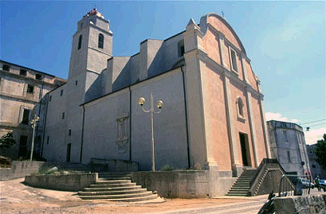Appartenente un tempo ad un convento di Frati Minori di S. Francesco d'Assisi, abbandonato nel 1644, ha una facciata dimessa ed animata soltanto dal piccolo campanile. La pianta presenta lo schema gotico-catalano con navata ad archi acuti e tavolato e presbiterio più stretto e rialzato, coperto a crociera. Sia l'altare che i bancali lungo i lati della chiesa sono ricavati in muratura. Sulla destra si apre una piccola sacrestia.